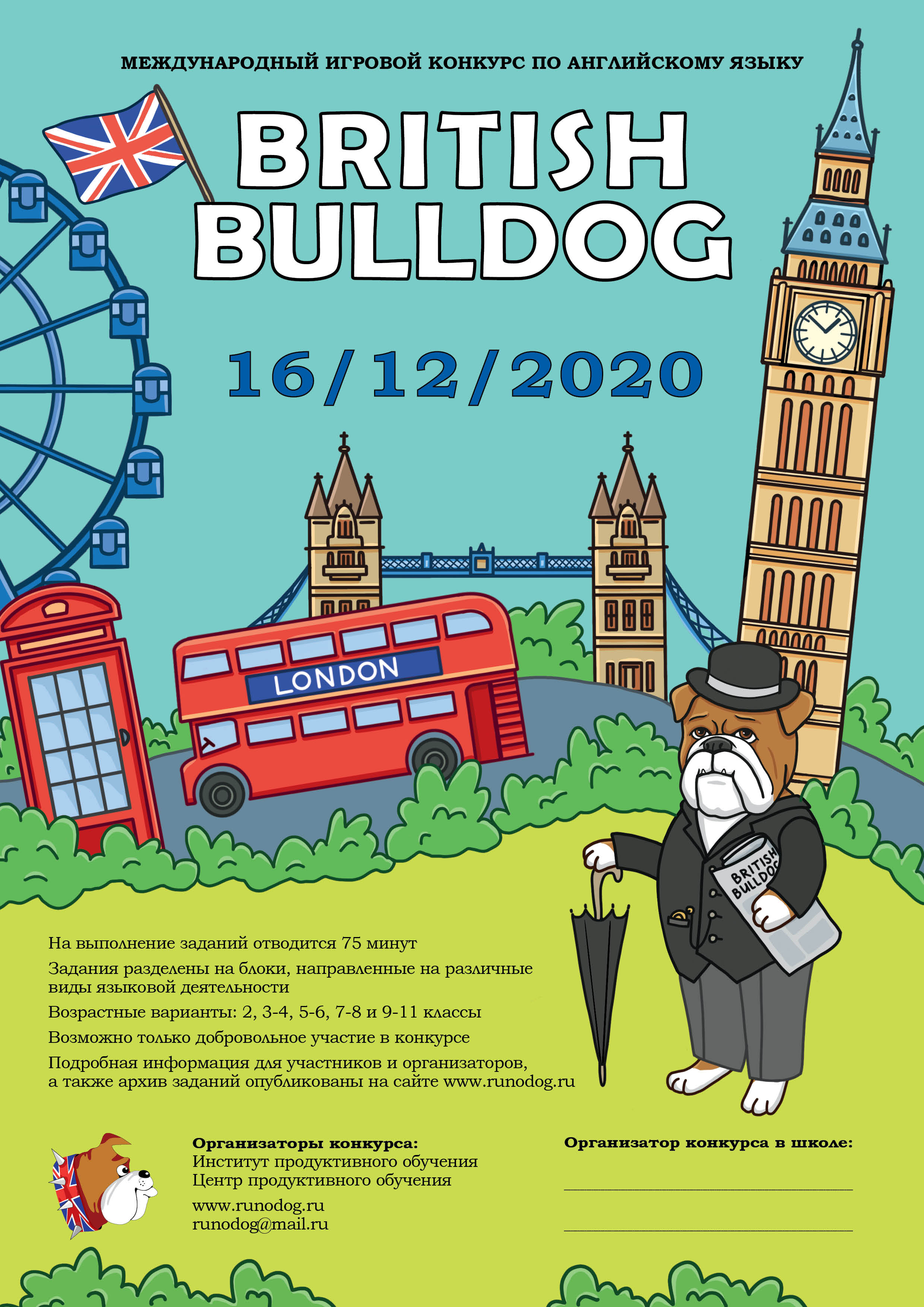Ребята, 16 декабря 2020 года состоится XIV международный игровой конкурс по английскому языку «British Bulldog».