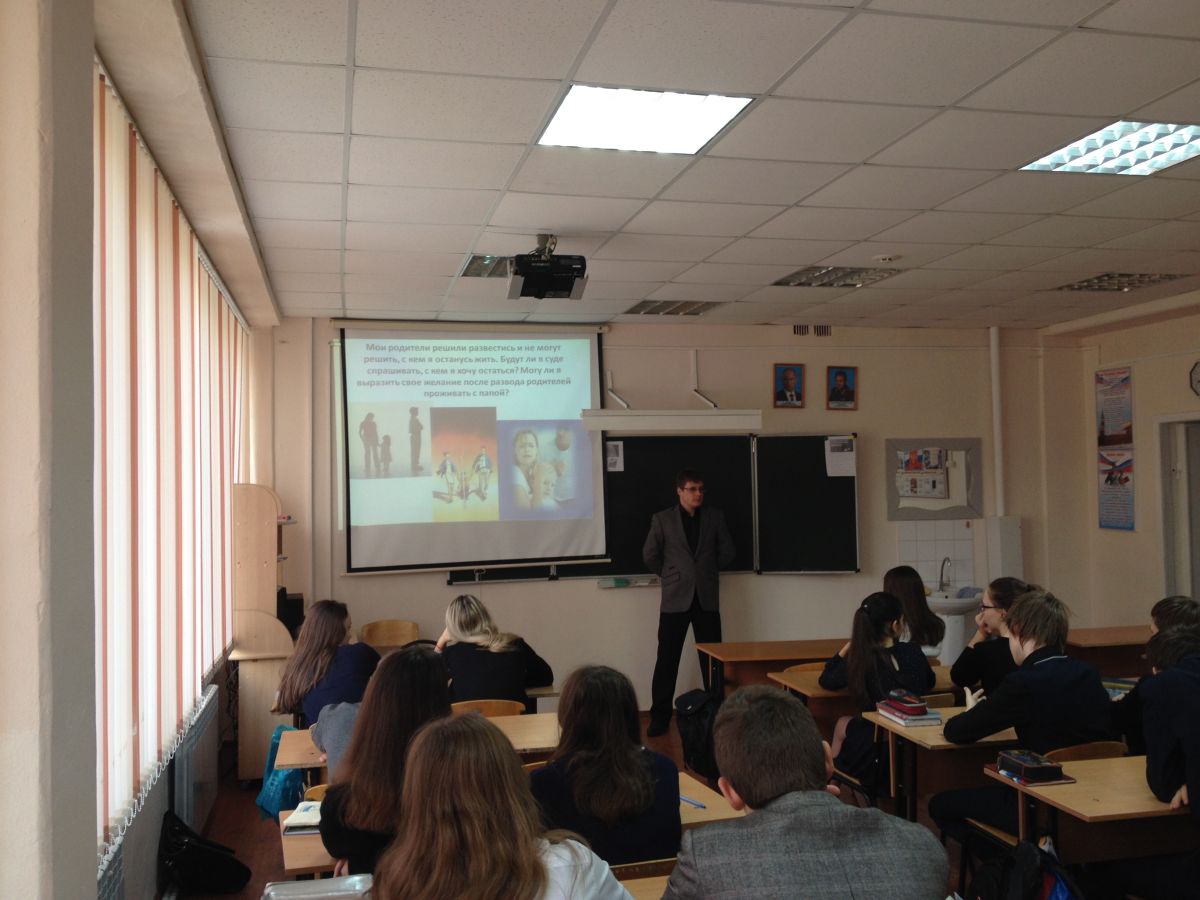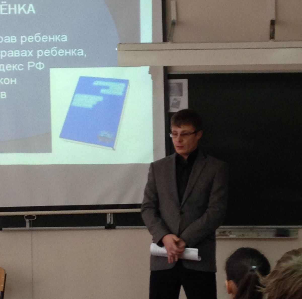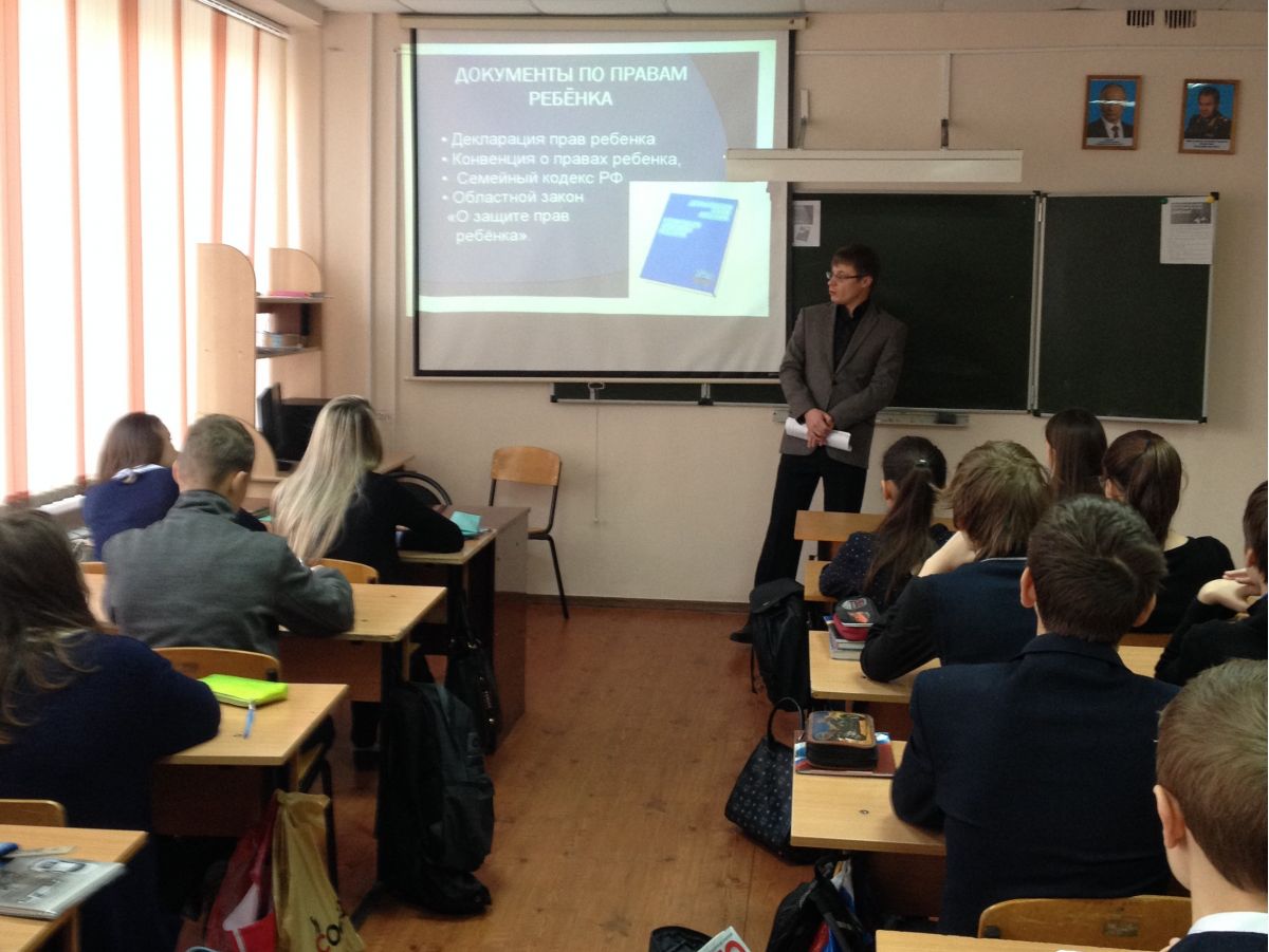 Опубликовано: 18 ноября 2016, 09:3217 ноября 2016 года в 9Г классе, классный руководитель Царева С.О., проведен классный час, посвященный Всемирному дню прав ребенка (20 ноября). Доцент кафедры гражданского права и процесса Поволжского института управления имени П.А. Столыпина Артеменко Борис Андреевич рассказал обучающимся о Международном правовом документе, определяющем права детей «Конвенции о правах ребенка» и обобщил знания об основных правах ребенка.