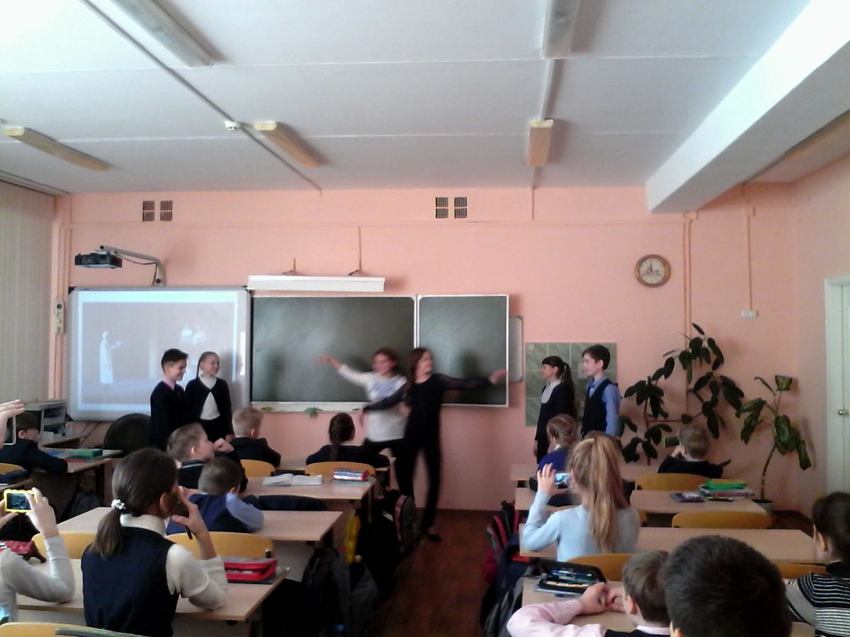 Учащиеся в ходе занятия обсудили содержание спектакля и даже попробовали себя в роли актеров.