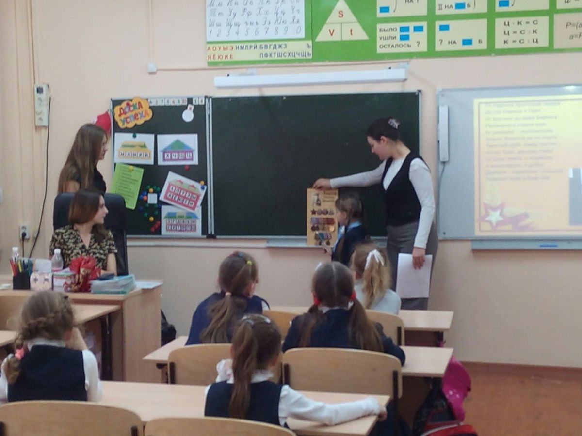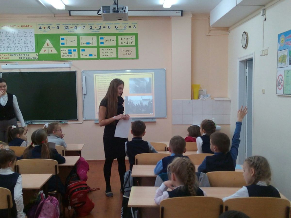 Опубликовано: 28 ноября 2016, 12:1325 ноября 2016 г. в 1Б классе прошёл тематический классный час «Я только слышал о войне». Ребята рассказывали о своих родственниках – героях Великой Отечественной войны. Звучали стихи о героизме советского народа. Высокий уровень эмоциональности, проведённого мероприятия, способствовал развитию патриотизма, чувства гордости за свой народ.