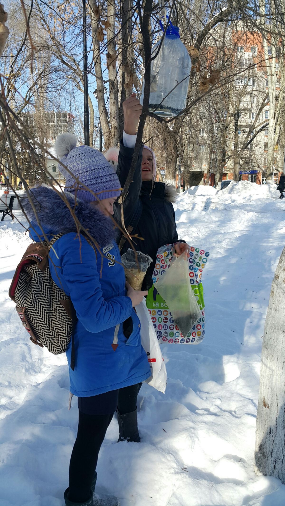 Опубликовано: 10 февраля 2017, 16:07Ребята из кружка "Созвездие" (руководитель: Мандрюк О.А.) установили в сквере и наполнили пшеном кормушки для зимующих птиц.