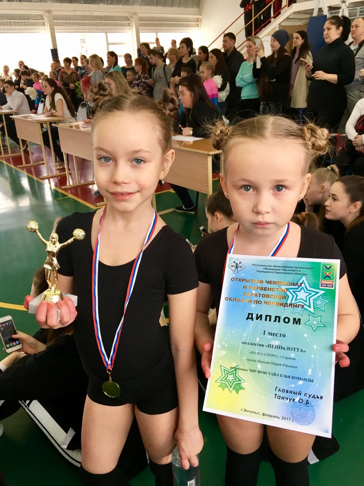 В Энгельсе прошел Открытый чемпионат и первенство Саратовской области по черлидингу - вид спорта (сочетающий в себе элементы танца, гимнастики и акробатики), команда "ПЕППиЛОТТА" (учащихся первых классов Бутырская Анастасия, Вавилова Софья, Захарова Варвара, Зотова Александра, Исакова Маргарита, Молдавская Александра, Морозова Ульяна, Савочкина Софья, Смагина Мария, Хачатрян Александра) в нелегкой борьбе одержали победу. Так держать, девочки!