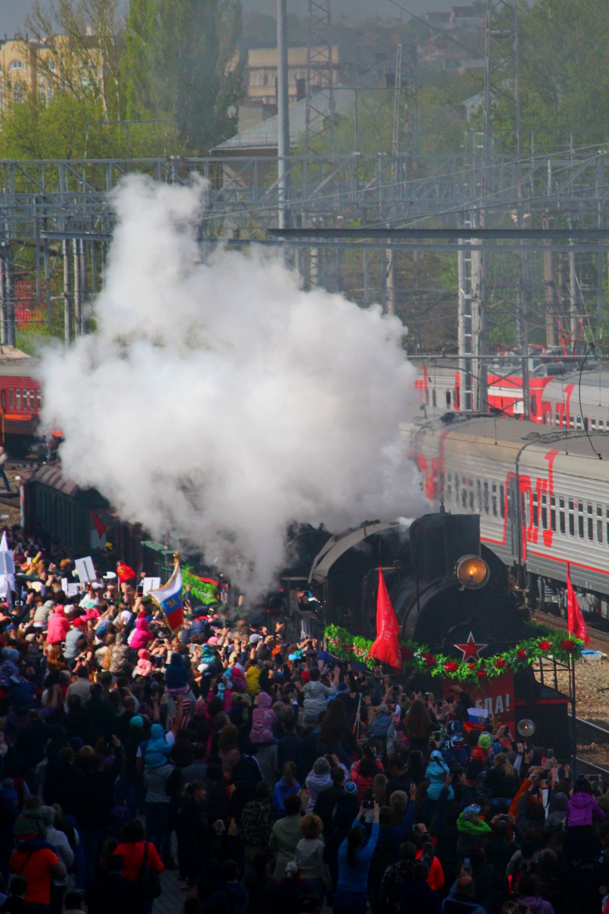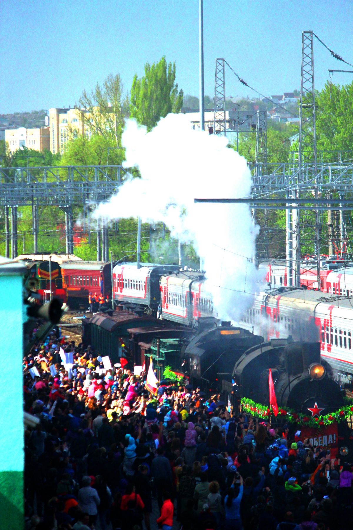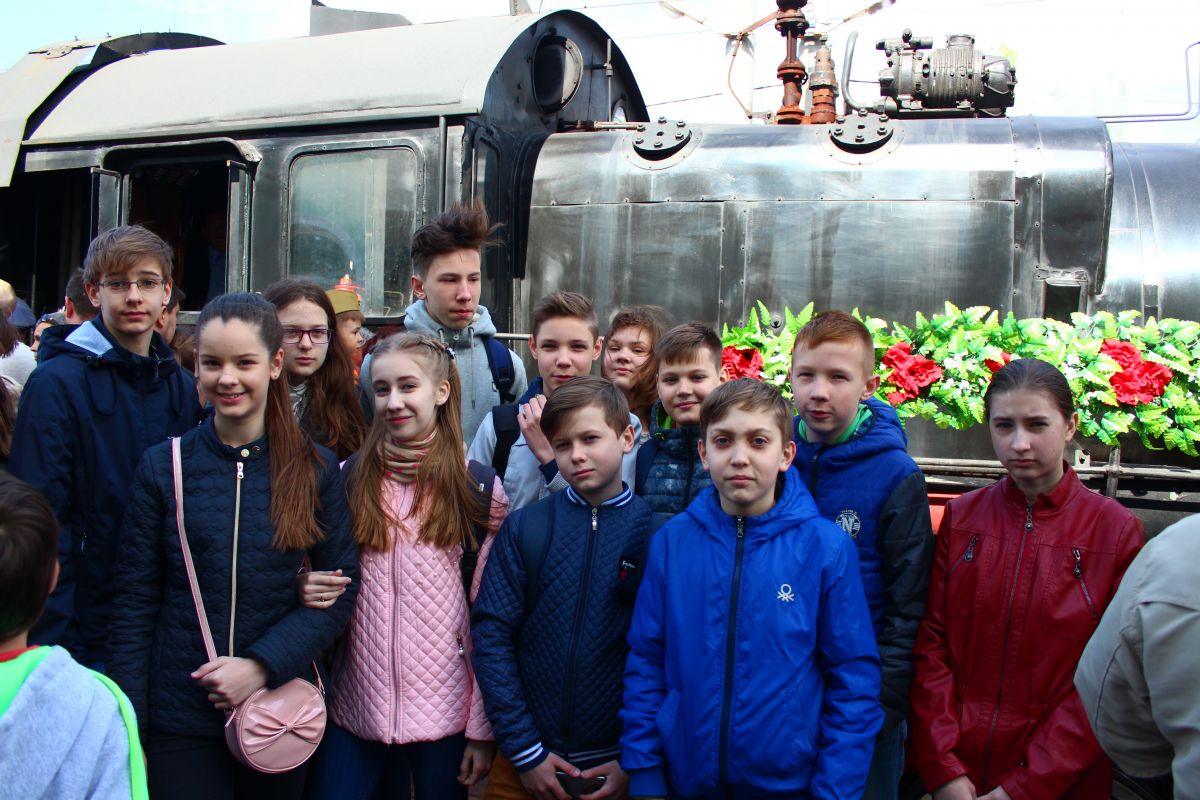6 мая в Саратов впервые приехал ретро-поезд "Победа". Учащиеся 6 «Г» класса (кл. рук. Ермакова Ю.В.) встретили поезд на саратовском вокзале.