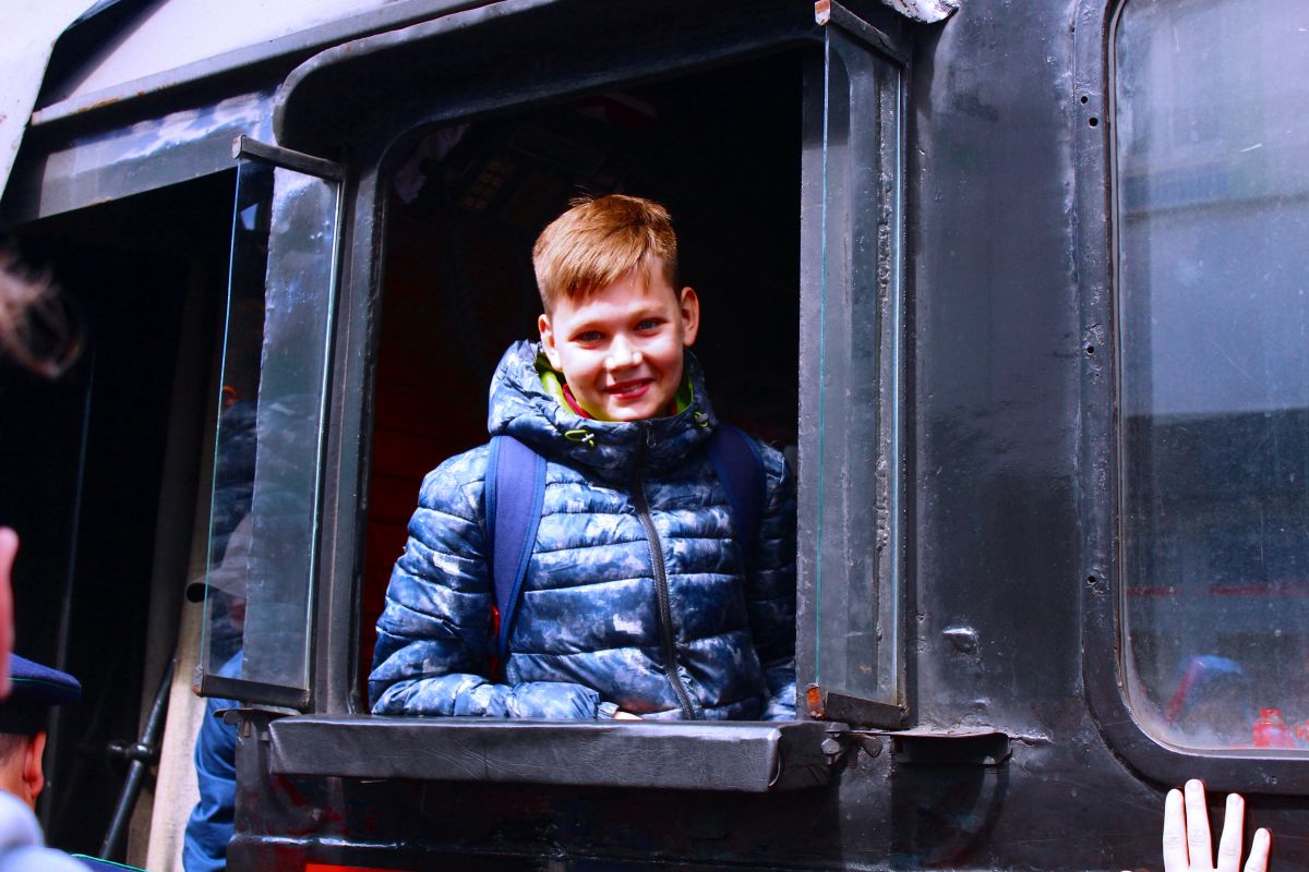 Во время остановки все желающие посмотрели вагон исторического состава изнутри.
