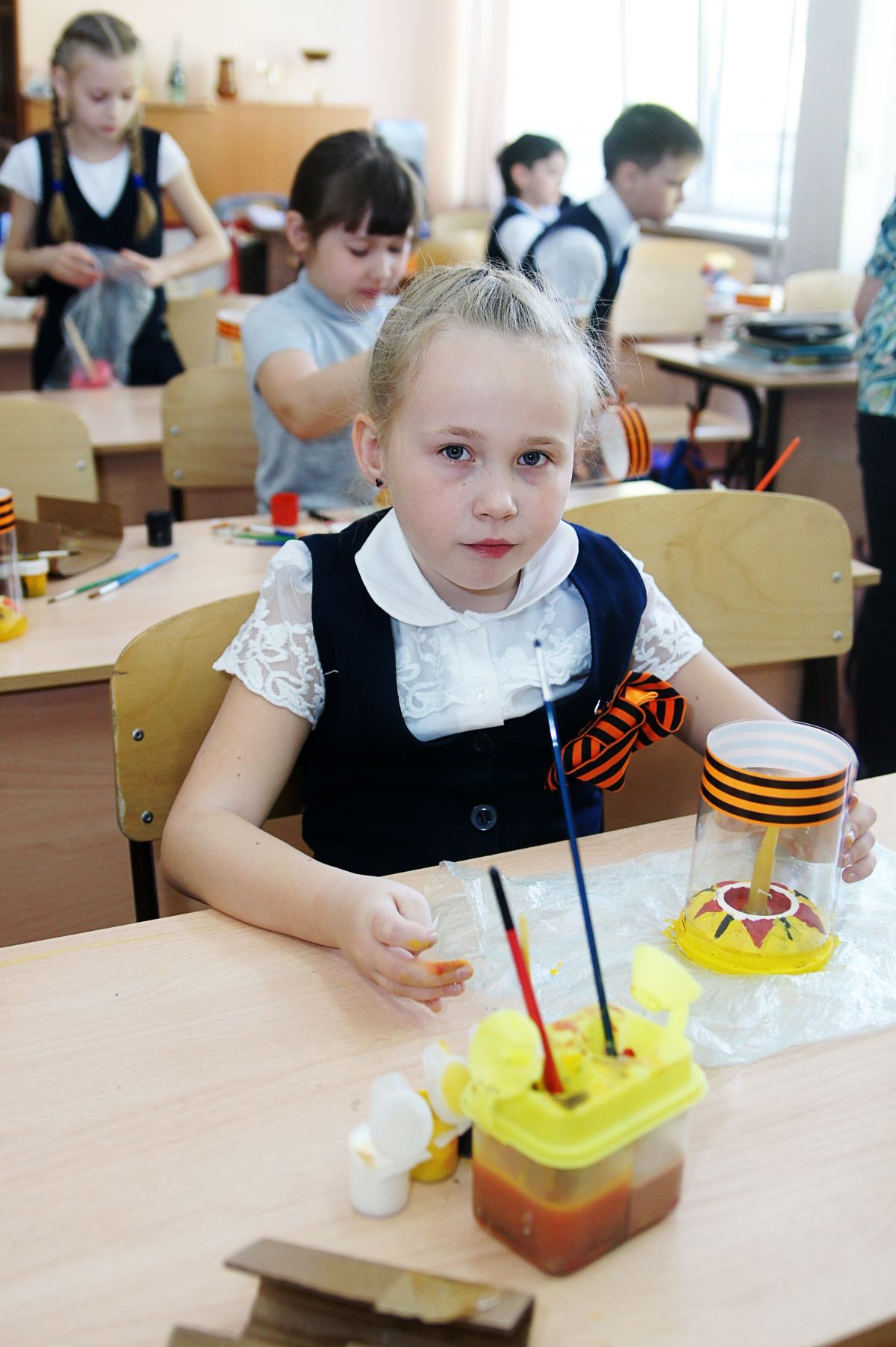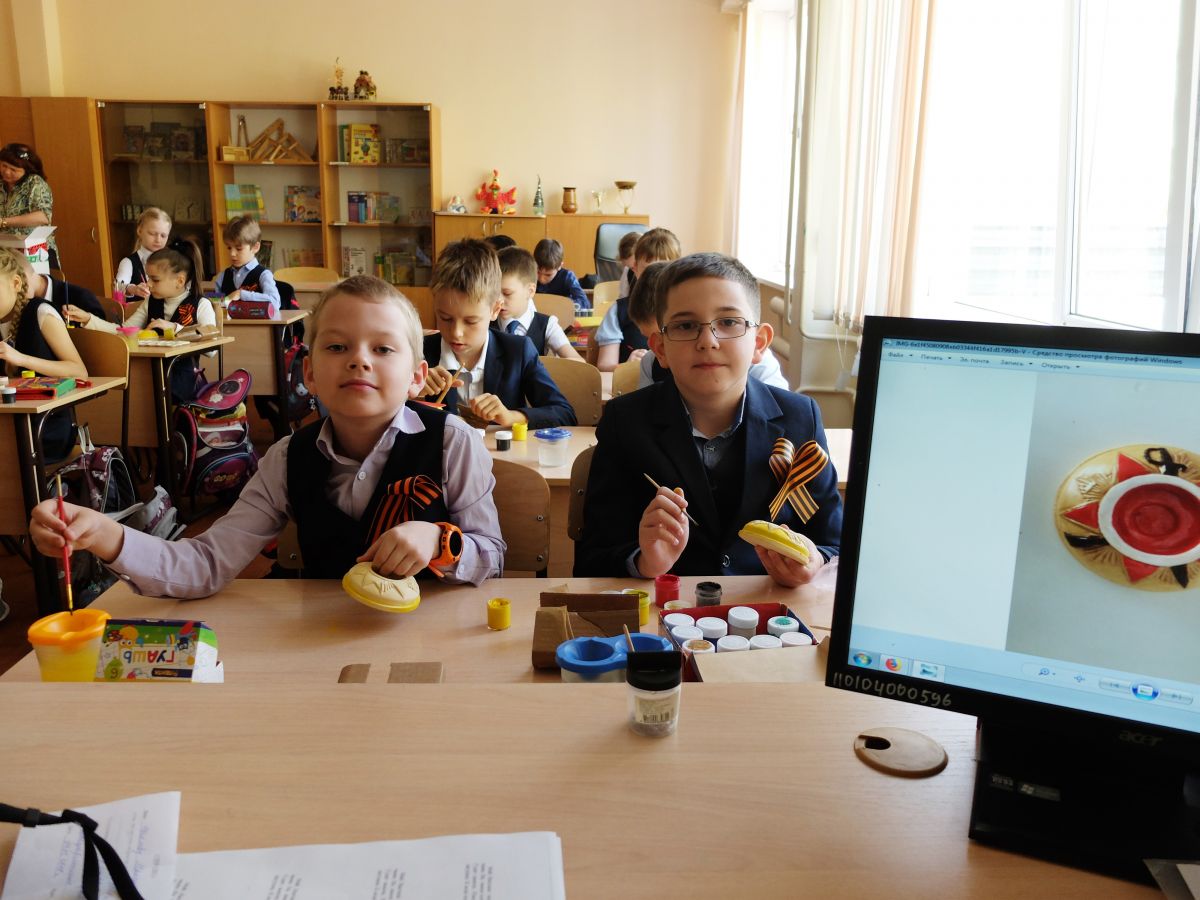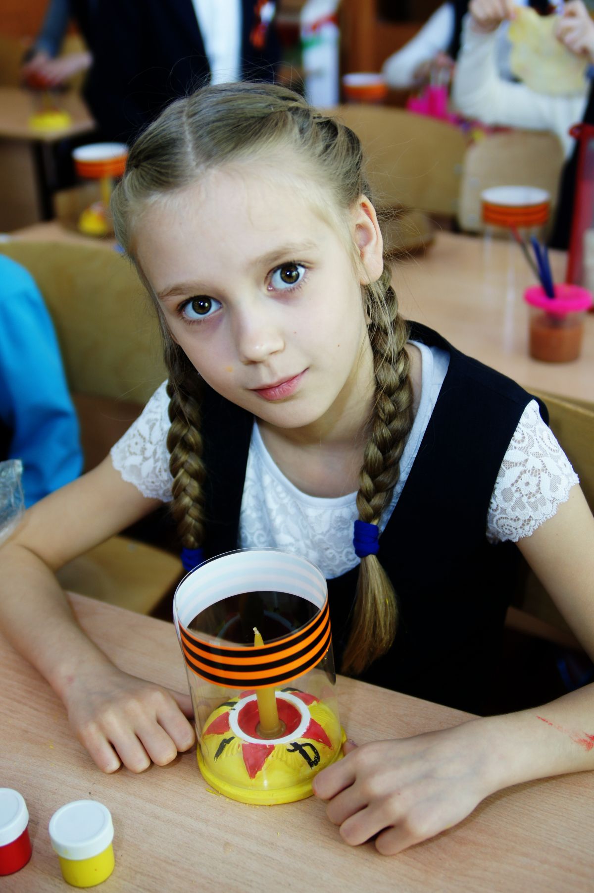 В конце мероприятия ребята приняли участие в оформлении георгиевской свечи. 9 мая в День Победы и 22 июня в день скорби в каждом окошке учеников 2 Б класса будет гореть георгиевская свеча в память о тех, кто ценою своей жизни спас Россию.