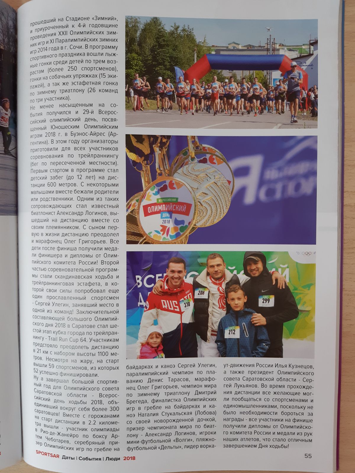 На фотографии журнала SPORTSAR «Даты. События. Люди 2018» участники 29 Всероссийского олимпийского дня: Денис Голубев с прославленными саратовскими спортсменами Денисом Тарасовым, Сергеем Улегиным, Артемом Чеботаревым.