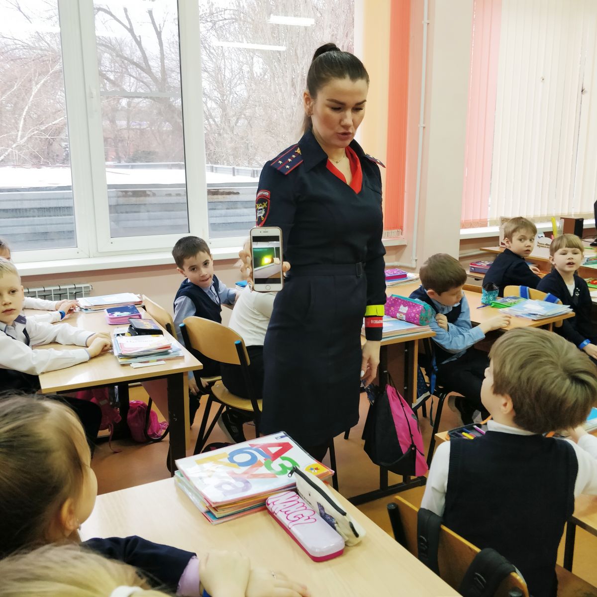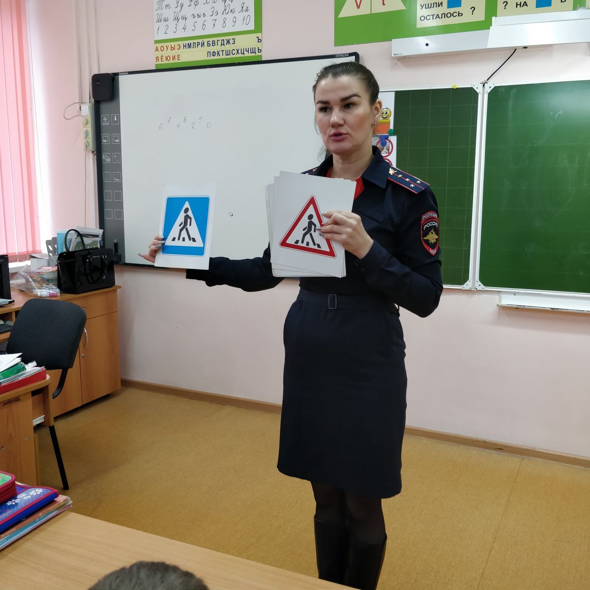 В игровой форме первоклассникам напомнили, какие бывают дорожные знаки и их значение. Разобрали сложные ситуации. Например, что делать, если ребенок не успел перейти дорогу на зелёный сигнал светофора и остался на середине проезжей части. Объяснили важность использования детских удерживающих устройств в автомобиле.