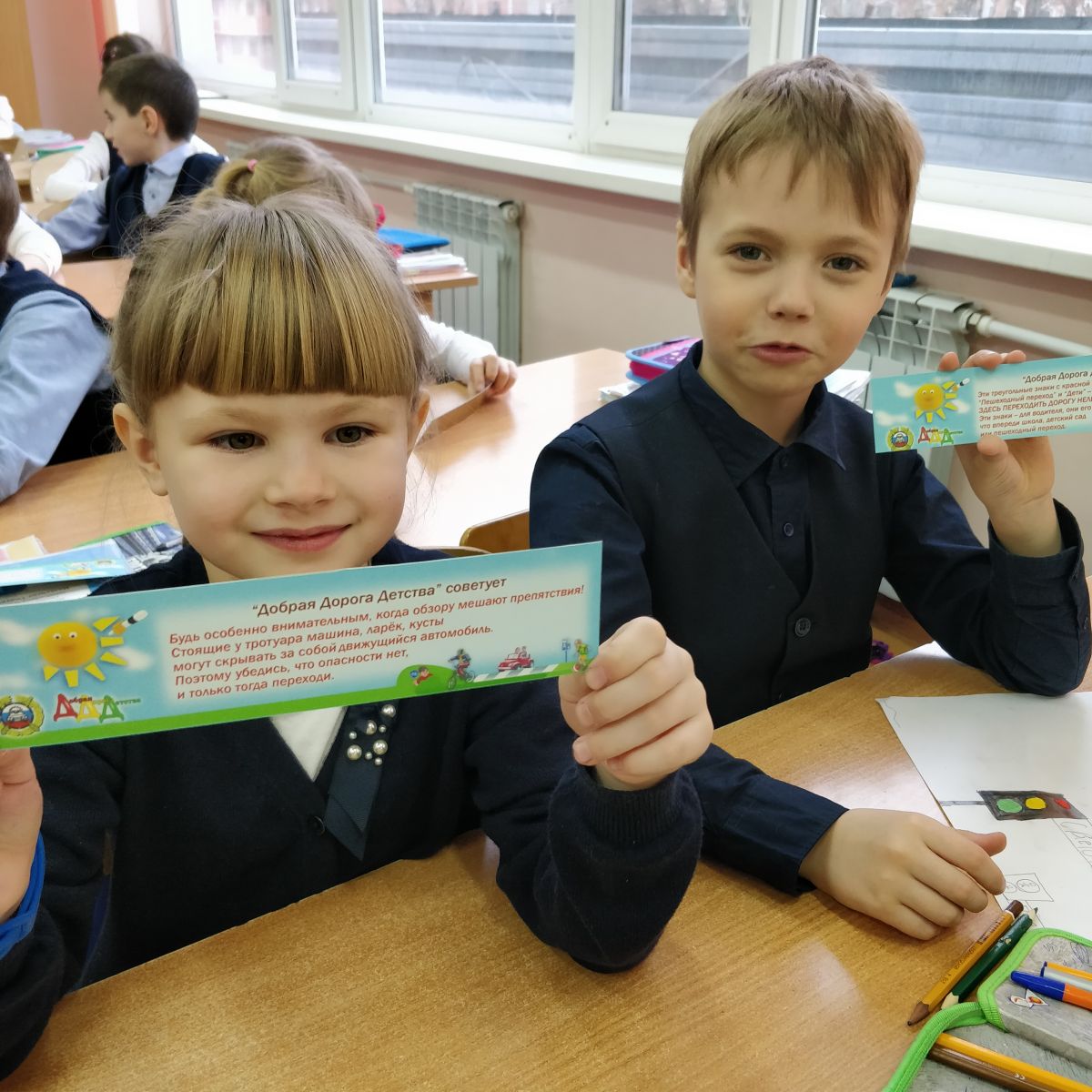 А чтобы первоклассники лучше усвоили материал, в конце занятия им подарили закладки с правилами дорожного движения.
