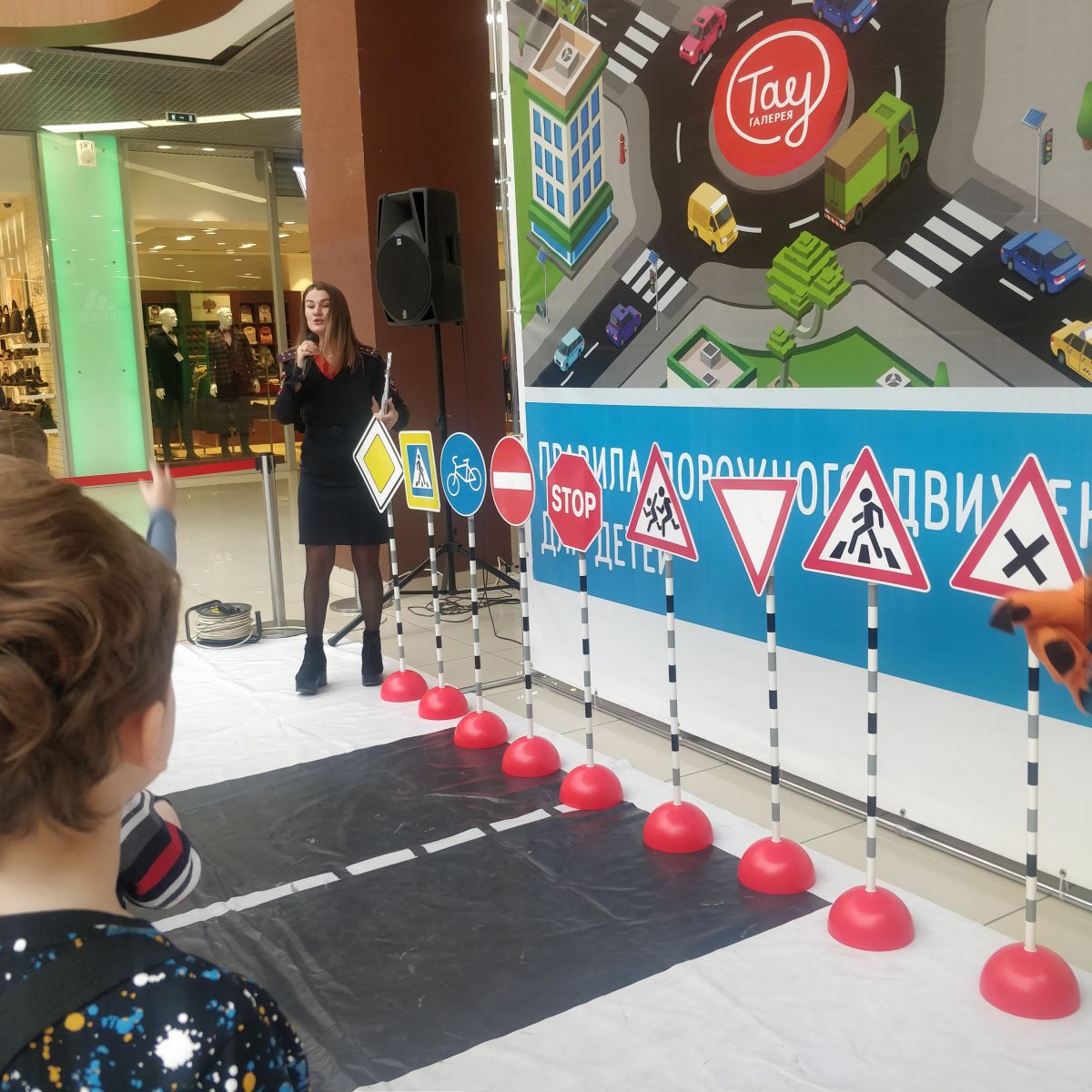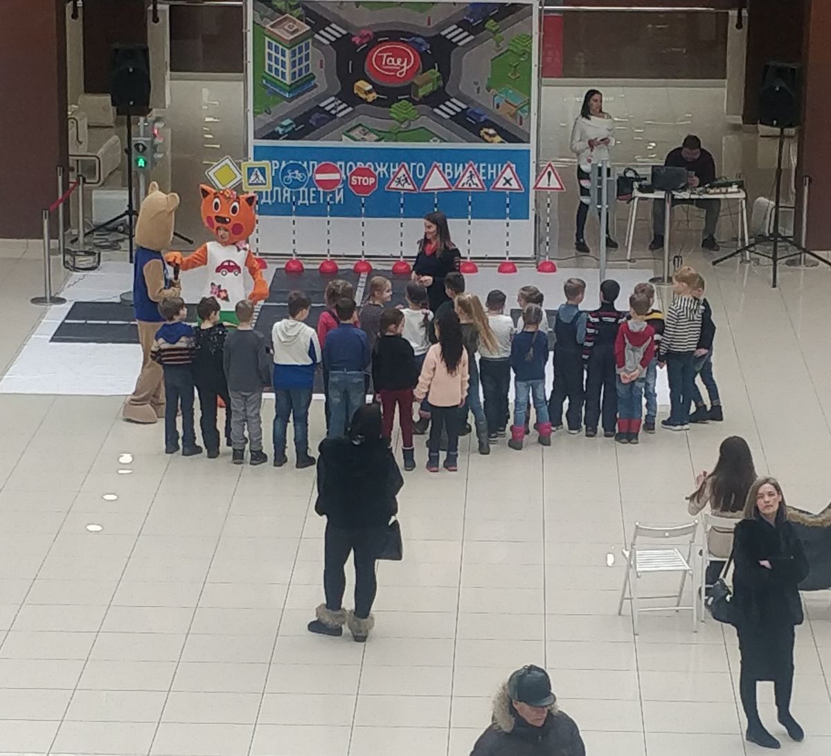Урок безопасности прошел на импровизированном автогородке, расположенном в ТРЦ "Тау Галерея". В ходе мероприятия первоклассники вспомнили правила поведения пешеходов при переходе проезжей части, названия и обозначения дорожных знаков, правила безопасного поведения в общественном транспорте. А помогали им в этом сказочные персонажи - Лисичка и Мишка.