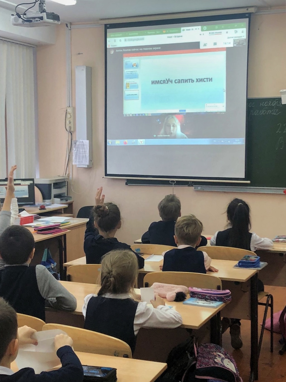 В честь праздника во 2 «Д» классе прошел классный час. Его провели классный руководитель Несмеянова И.А. и учитель русского языка и литературы Хохлова М.М.. В сложившейся эпидемиологической ситуации общение с филологом проходило в онлайн-формате.