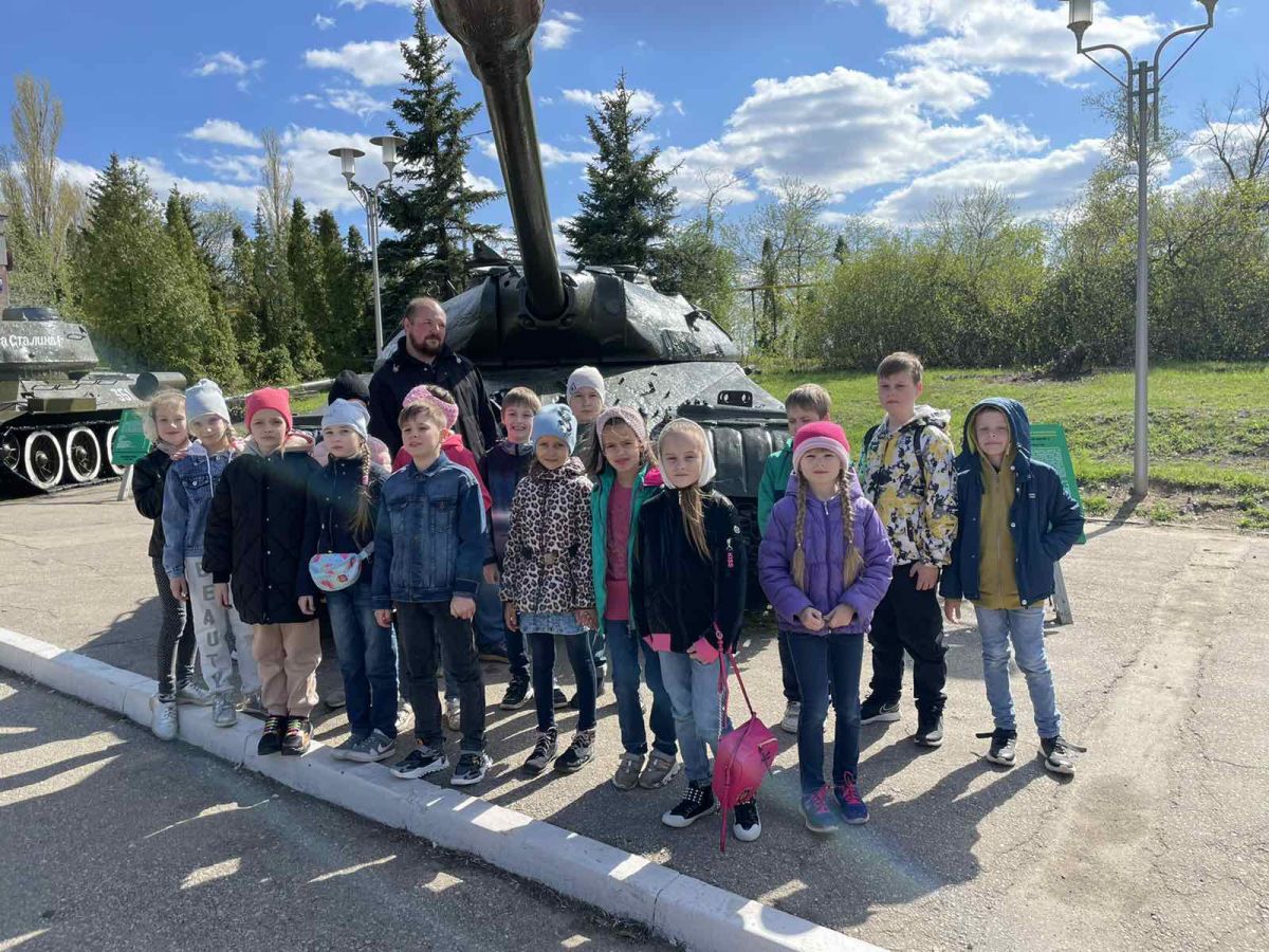 Ученики посетили Музей боевой и трудовой славы, расположенный в парке Победы на Соколовой горе. Первая экскурсия проводилась по музейной части под открытым небом. Дети узнали историю создания парка Победы, Вечного огня, рассмотрели танковую технику и противотанковые пушки.