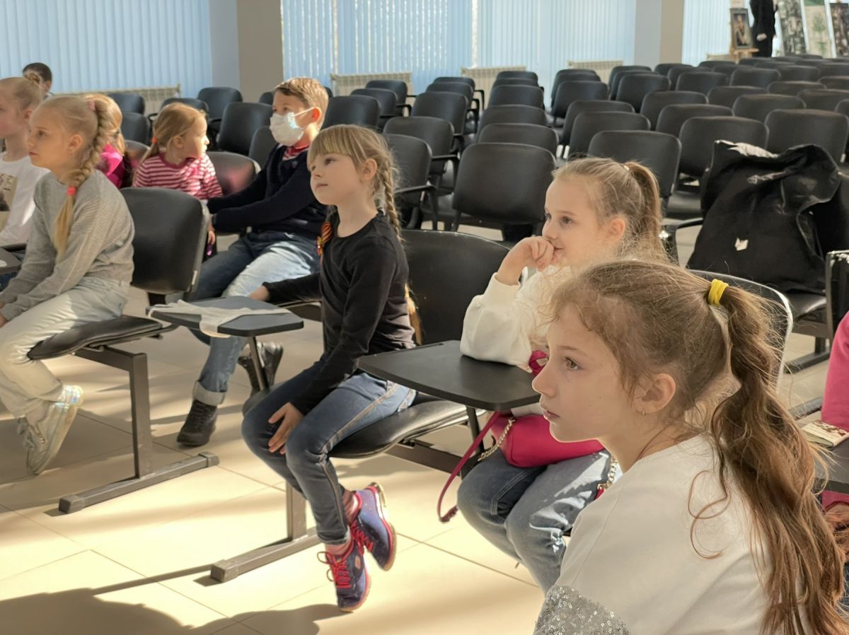 Беседа о Великой Отечественной войне продолжилась в конференц-зале Музея боевой и трудовой славы. Здесь прошел тематический классный час «Что мы знаем о войне». Детям показали ролик «Бессмертный полк нашего класса» об их родственниках-ветеранах ВОВ, созданный родителями. Поговорили о том, как в каждой семье празднуют день Победы, что символизирует георгиевская ленточка, зачем помнить о подвиге предков. Лицеисты с гордостью посмотрели мультфильм «Мы замолкаем, глядя в небеса…», созданный их руками в прошлом году и собравший множество наград как на местных, так и на федеральных конкурсах.