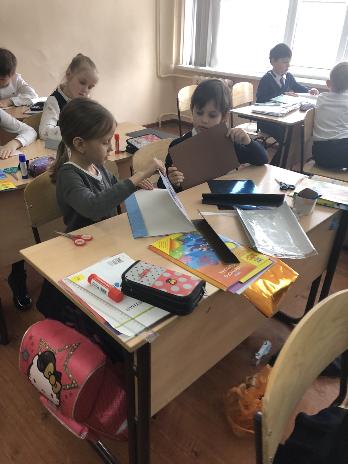 Классный час завершился мастер-классом «Богатыри земли Русской». Ученики своими руками изготовили мечи из картона и украсили их.